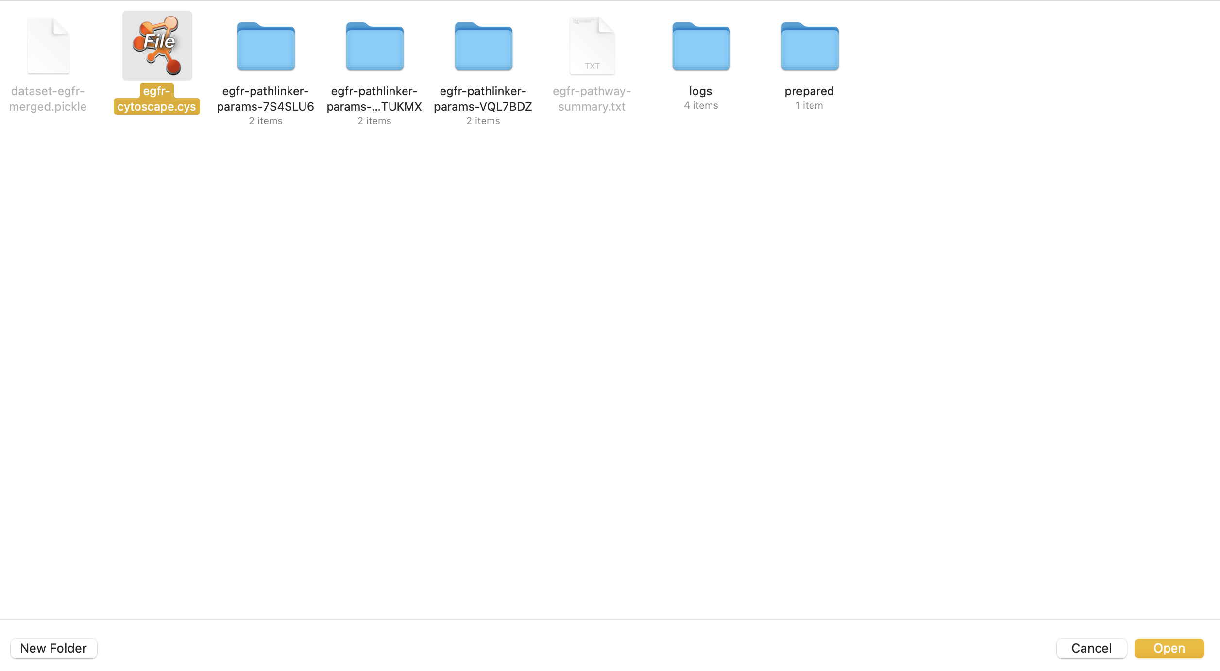 Navigate to output/beginner/egfr-cytoscape.cys and open it in